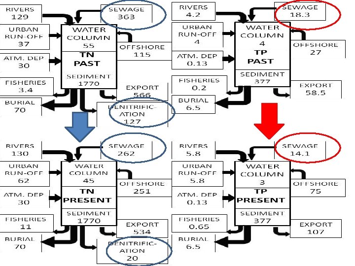 • Recent management efforts to reduce nitrogen loading have resulted in an approximately 1: 1 reduction in standing stock. • Phosphorus loads are already 30 -50% less than peak levels. – WWTF & non-point sources – May become more important to biology, especially in upper bay. • At present, no or minimal biological response to the loading reductions can be detected. • Future reductions may be large enough to elicit some biological response Adapted from Oviatt et al. 1986