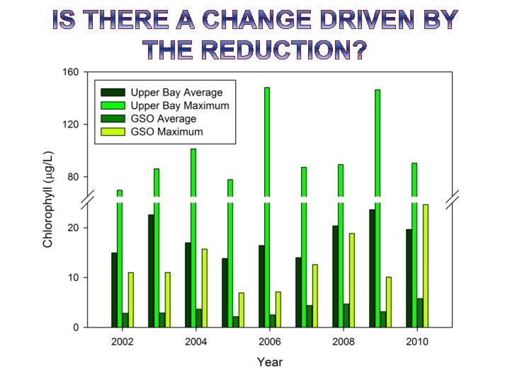 Chlorophyll-a (mg/L) 40 R 2 = 0. 1178 30 20 10 0 1975 7 Chlorophyll-a (mg/L) Annual Maxiumum Chlorophyll-a 1980 1985 1990 1995 2000 2005 2010 Annual Average Chlorophyll-a 6 5 4 3 2 1 0 1975 1980 1985