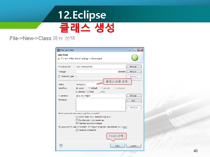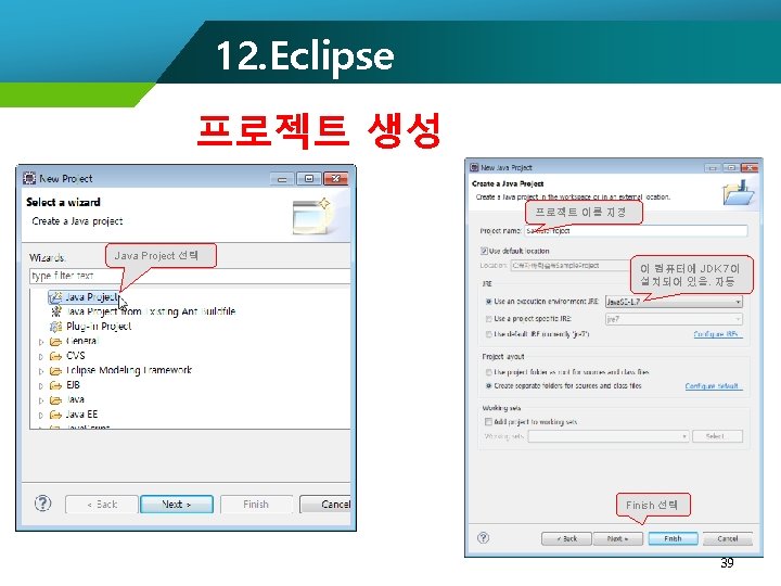 12. Eclipse 프로젝트 생성 Project 메뉴 선택 38