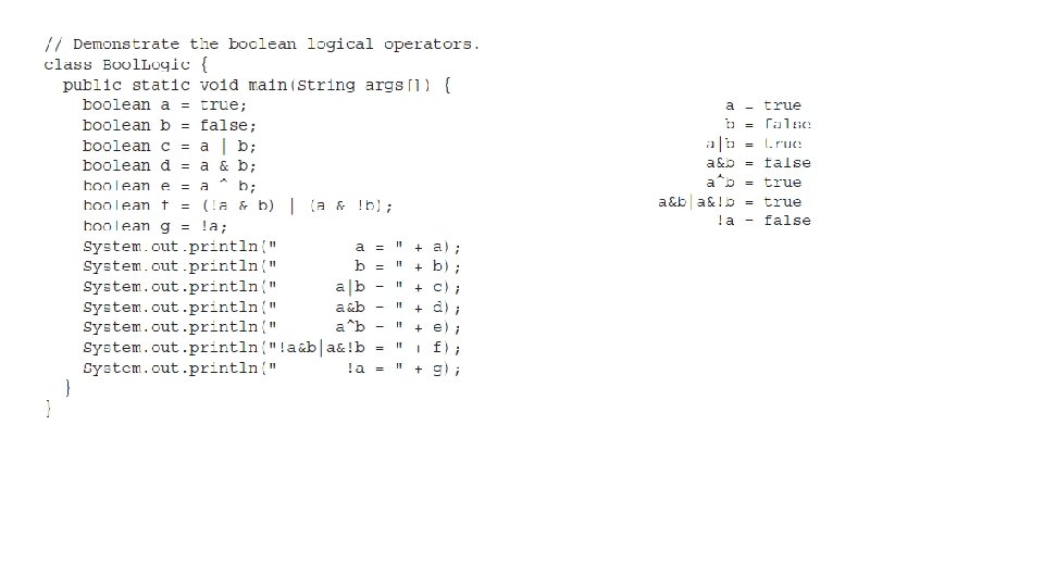 Boolean Logical Operators • All of the binary logical operators combine two boolean values to form a resultant boolean value.