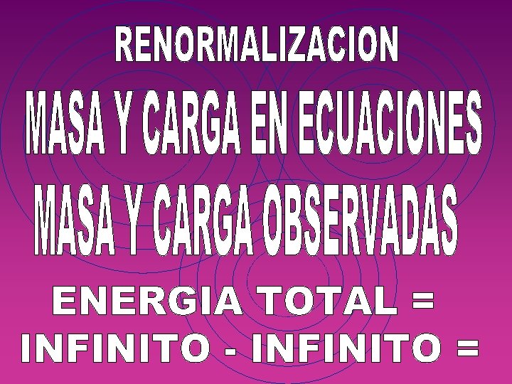 MECANICA CUANTICA + CAMPOS ELECTRICOS Y MAGNETICOS = QED (ELECTRODINAMICA CUANTICA) ENERGIA DEL ELECTRON = (INFINITO!)