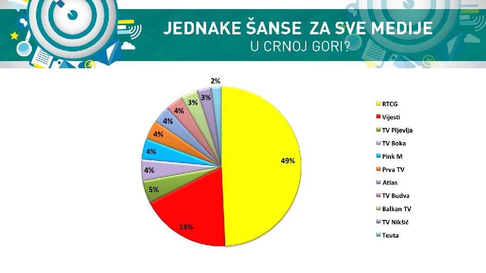 J ZAKLJUČCI v. Finansiranje medija u Crnoj Gori iz javnih fondova ostaje neregulisano, nekontrolisano i netransparentno, i u tom pogledu vlasti nijesu uložile napore kako bi se ova oblast unaprijedila iako je tema otvorena već četiri godine i predmet je rastuće zabrinutosti i relevantnih međunarodnih organizacija. v. Vlasti vrše neprimjeren uticaj na medijsko tržište, kroz netransparentna i selektivna finansijska izdvajanja javnih sredstava koja se po različitim osnovama raspodjeljuju medijima. Uz inače izazovnu ekonomsku situaciju i smanjenje marketinških budžeta preduzeća na crnogorskom medijskom tržištu, a istovremeno povećanje učešća javnih fondova i njihovo trošenje bez jasnih kriterijuma vrši se prikrivena cenzura medija u Crnoj Gori v. Institucije u Crnoj Gori i dalje ne objavljuju proaktivno podatke o ukupnom iznosu državnog novca koji se izdvaja za oglašavanje, reklamiranje ili finansiranje medija po drugim osnovima na godišnjem nivou, a značajan broj njih krši Zakon o slobodnom pristupu informacijama da bi skrio ove podatke.