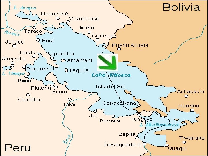 Obyvateľstvo • • Inkovia prišli ku brehom jazera Titicaca už pred vyše tisíc rokmi. Našli tam primitívny kmeň Aymarov, ktorým podľa legendy priniesli múdrosť a kultúru. Inkovia nakoniec ostali pri Titicace natrvalo až do zániku svojej civilizácie. Bolo pre nich oázou uprostred nehostinnej, divokej a monotónnej krajiny, ktorú obývali. Dodnes patrí okolie jazera Titicaca k najhustejšie osídleným územiam Peru a Bolívie, pretože aj napriek značnej nadmorskej výške, v ktorej leží, možno pri jeho brehoch pestovať rôzne poľnohospodárske plodiny. Hlavnou skupinou žijúcou pri jazere sú indiáni z kmeňa Uru.