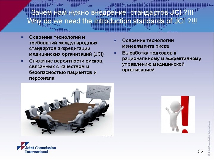 Негативные тенденции 2015 г. (Negative trends) § Рост обоснованности жалоб пациентов § Увеличение финансовых потерь от предъявленных судебных исков § Увеличение финансовых потерь от предъявленных актов страховых организаций § The increase in financial losses from lawsuits brought against § Тhe increase in financial losses brought against acts of insurance companies 49 © Joint Commission International § The growth of the validity of patient complaints