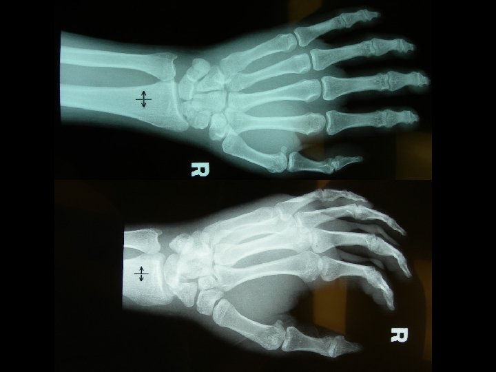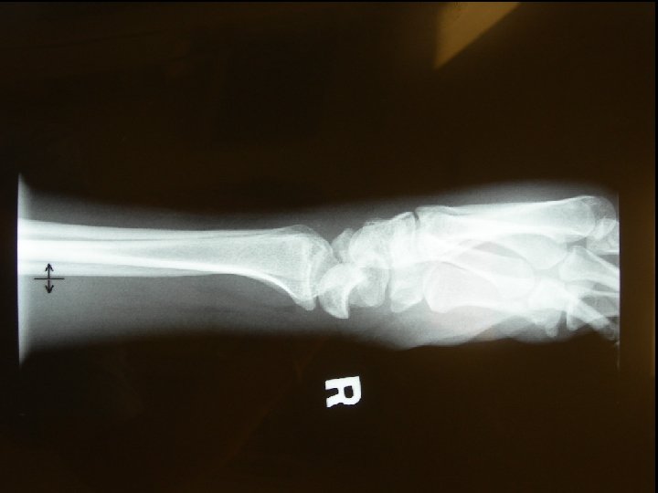 Question 2 • A 37 -year-old man attended A&E because of pain over his right wrist for one week after a fall from ladder. (a) What are the X-rays abnormalities?