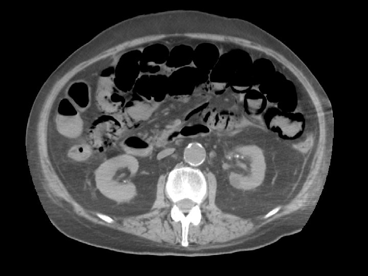 Question 6 • The result of arterial blood gas was as follows: • p. H 7. 029, p. CO 2 1. 93 k. Pa, p. O 2 23. 1 k. Pa, BE – 27, HCO 3 3. 8 mmol/L, Sa. O 2 99% • Na 136 mmol/L, K 4. 0 mmol/L, Cl 95 mmol/L • H’Stix 11. 7 mmol/L • Urgent CT abdomen was performed.