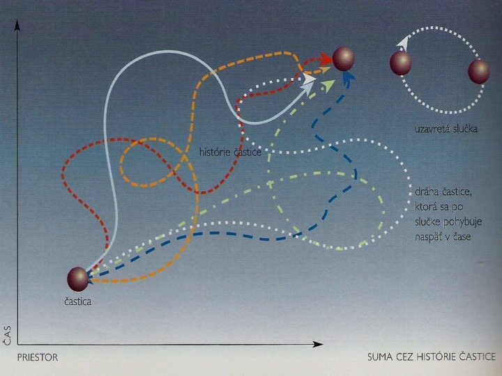 Aj keď to dnes s cestovaním v čase nevyzerá najoptimistickejšie, nie je to až také zlé, pretože na mikroskopickej úrovni pohyb v čase naozaj prebieha. Podľa Feynmanovej teórie sa častica z bodu A do bodu B dostane cez všetky možné dráhy teda aj také, v ktorých sa častica pohybuje rýchlejšie ako svetlo, dokonca sa vracia späť v čase, alebo neustále obieha dookola po uzavretej slučke v čase i priestore.