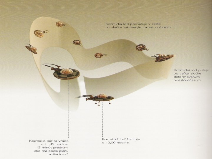 2. Sústreďme sa na to, či zákony fyziky pripúšťajú také zakrivenie časopriestoru, aby sa makroskopické telesá, ako napríklad kozmická loď, mohli vrátiť do vlastnej minulosti. Teda sú v časopriestore prípustné uzavreté slučky, ktoré sa opätovne vracajú do svojho východiskového bodu ? ? ?