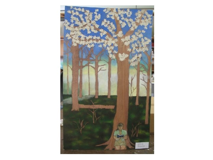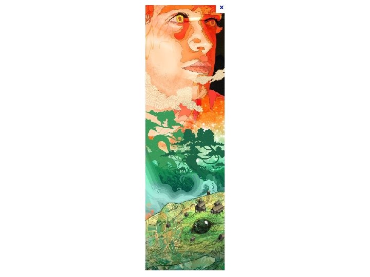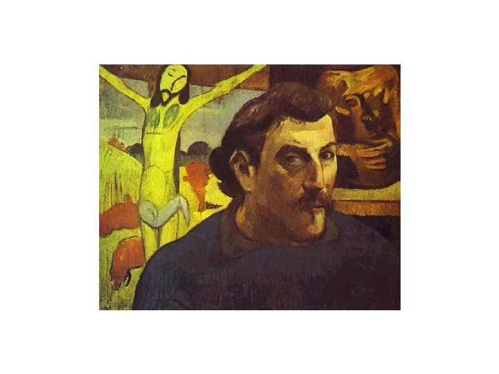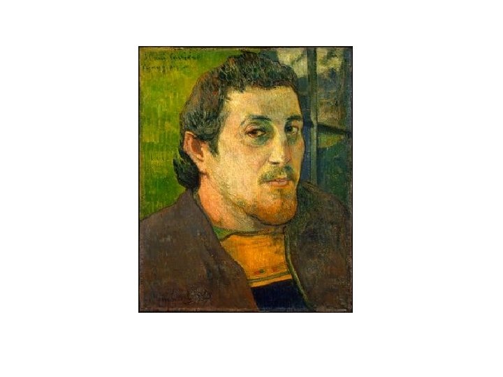 A strange mix? Experts continue to debate what Gauguin intended with these contradictory symbols. He seems to be dealing in opposites: good and evil, heaven and hell. He places expanses of flat, intense color—red and yellow—next to each other. He frames his floating head with stylized, arching green stems and square flowers. Is this the Garden of Eden. . . or. . . ? Is Gauguin telling us he is part angel, part devil? Perhaps he's showing himself as a sort of magician—an artist with tremendous creative power who can conjure identities through his artistry. Another unusual fact about this work: Gauguin painted it on the wooden door of an in northwestern France. All in all, it is a very startling and thoughtprovoking portrait.