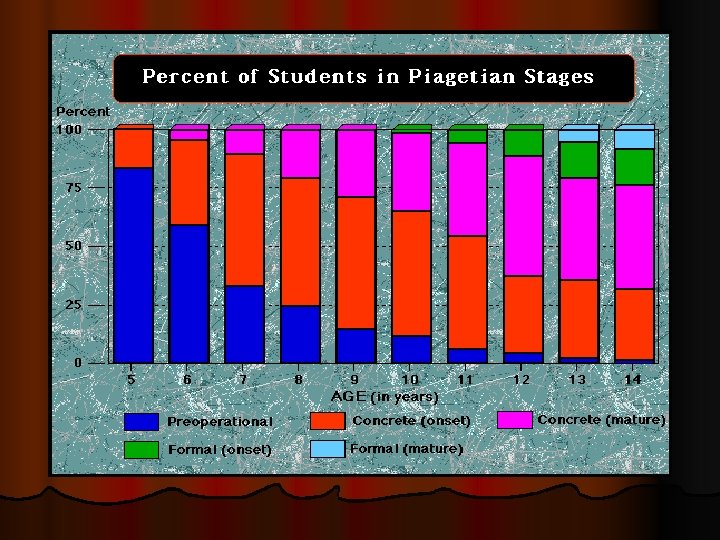 Formal Operations Stage l Enter stage around age of 12 l They become confident in adult style thinking. l They use logical operations. They use them in the abstract rather than the concrete – Hypothetical Thinking