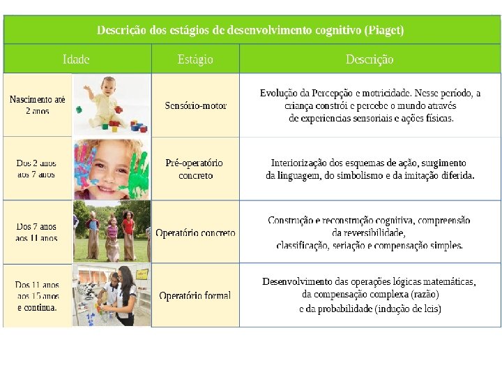 PIAGET • Ser humano: desde o nascimento traz bagagem hereditária (capacidade intelectual) mas não consegue, AINDA, realizar operações de pensamento ou ato simbólico.