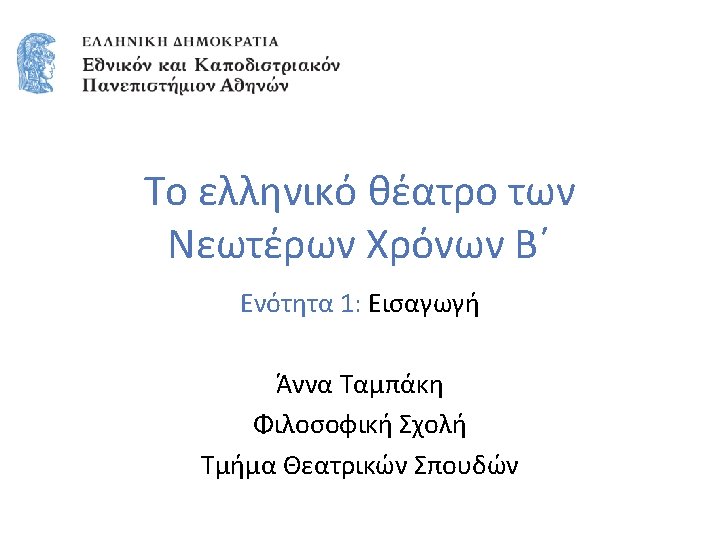 Σημείωμα Χρήσης Έργων Τρίτων (3/8) Εικόνα 12: Γυναίκες στο Φανάρι. Public domain. https: //commons. wikimedia. org/wiki/File: Daniel_Valentine_Rivière__Phanariot_Greek_Ladies_-_Google_Art_Project. jpg Εικόνα 13: Ασπασία Μάνου. Public domain. https: //commons. wikimedia. org/wiki/File: Aspasia_Manos. jpg Εικόνα 14: Ευγένιος Βούλγαρις. Public domain. http: //3. bp. blogspot. com/NGQyid. AQbik/UJQt 3 ADv 5 CI/AAAAD 9 o/M 5 GQtn 6 y. Rf 8/s 1600/Evgenios_Voulg aris. jpg Εικόνα 15: Αικατερίνη της Ρωσίας. Public domain. https: //commons. wikimedia. org/wiki/File: Catherine_II_by_J. B. Lampi_(1793, _Hermi tage). jpg Ενότητα 1: Εισαγωγή 53