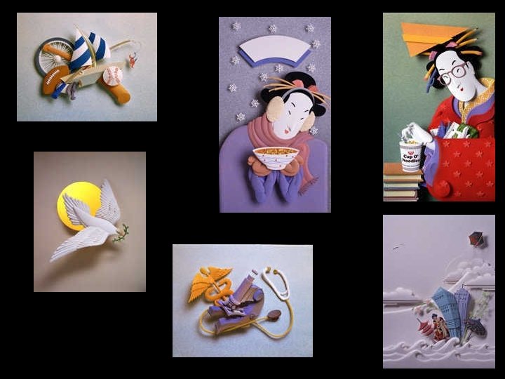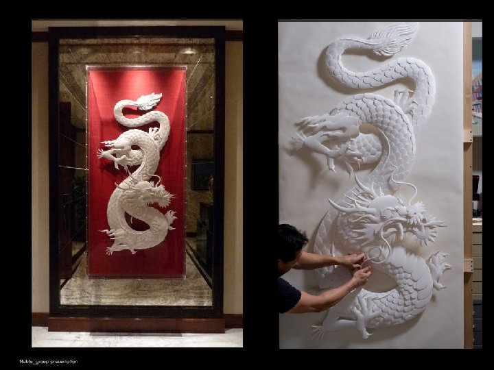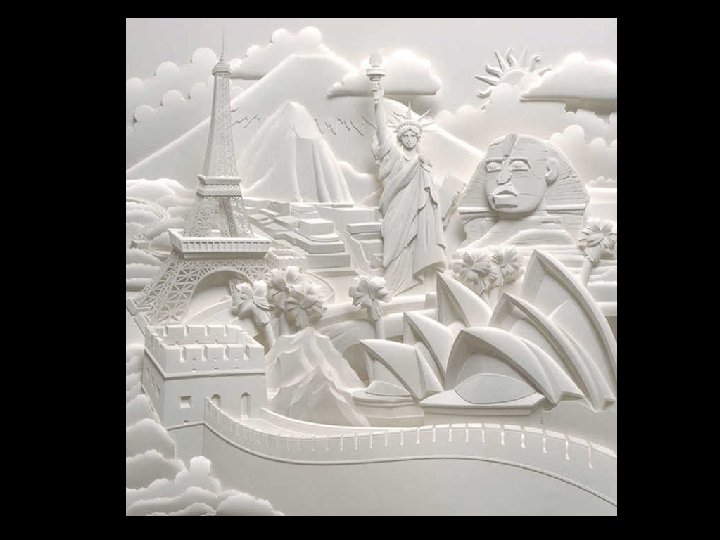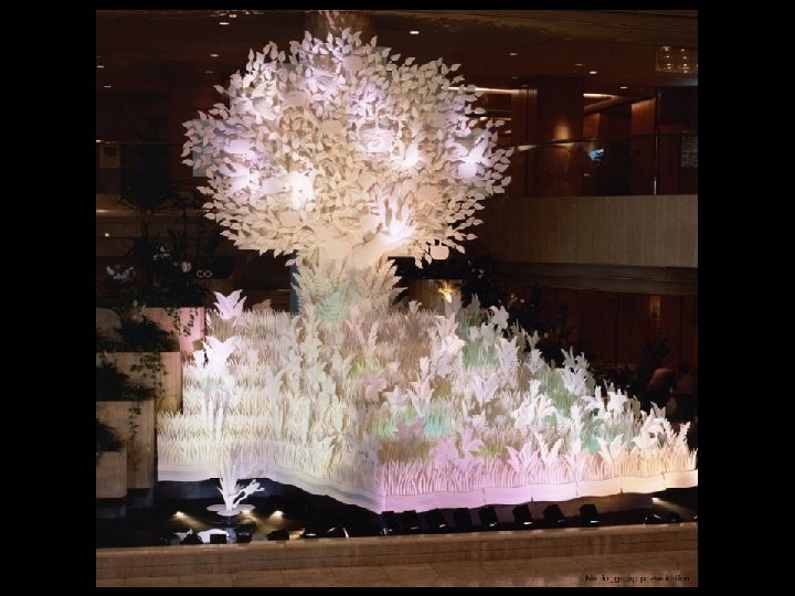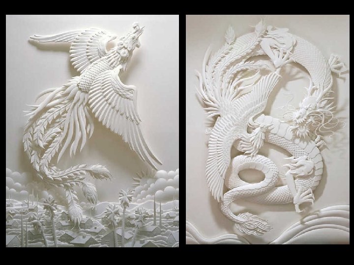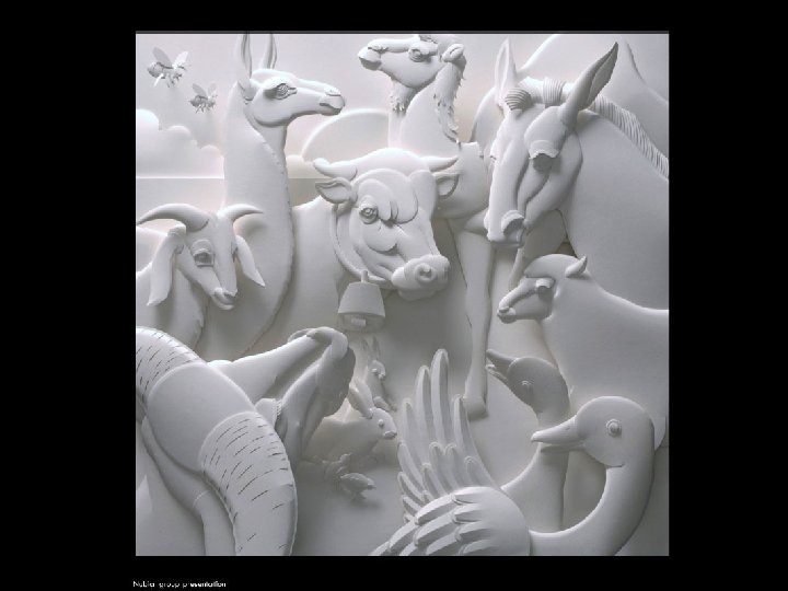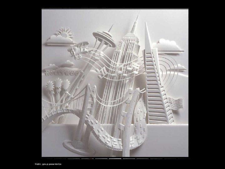 Jeff Nishinaka carves and pinches paper to create intricate paper sculptures. The 52 -year-old Los Angeles based illustrator and sculptor has been refining his paper craft since 1982. Taking anywhere from three days to four months to produce, Jeff's detailed pieces range from 8 in by 8 in to 20 feet tall and 20 feet wide All copyrights belong to the artist Jeff Nishinaka http: //www. jeffnishinaka. com/ Jeff Nishinaka cuts and crushes the paper with an enviable skill to create exquisite paper sculptures. 52 -year-old illustrator and sculptor from Los Angeles creates his work from 1982. The stunning elegance of Jeff Nishinaka’s paper art calls for a new definition of paper. His meticulous sculptural 3 D work appears to have been created from marble or extremely fine sand or vanilla ice cream or thick foam — definitely of something other than “just” paper. The Los Angeles-born artist works mainly with white, which makes the exquisite play of light and shadow a large part of the appeal of his work. One might assume that there is very little demand for work that uses one medium and one color. Not so. Nishinaka’s work pops up everywhere in the most unexpected places, from medical illustrations of the structure of the eye, to private portrait commissions, to a life-size garden for a hotel. He has a prolific career working in advertising, fashion and fine art, and also creating some larger installations. His commercial work includes commissions for fashion catalogues for Bloomingdales and Galeries Lafayette, advertising work for Visa, Coca Cola, Playboy, American Airlines, Toyota and Mattel. Even the colourful characters of Disney’s Lion King — Pumbaa, Timon, Rafiki et. al. — look absolutely stunning in Nishinaka’s white paper world. If you want to see a lot of Nishinaka’s work in one place, you need to talk to his personal friend, actor Jackie Chan, the owner of the largest Nishinaka collection. Jeff’s paper sculpting career has spanned 28 years, and his commercial portfolio includes clients such as Bloomingdale’s, Visa, Penn State University, Paramount Pictures, Harvard Medical School, Random House, and Mattel, for whom he designed these beautiful, custom Barbie sets