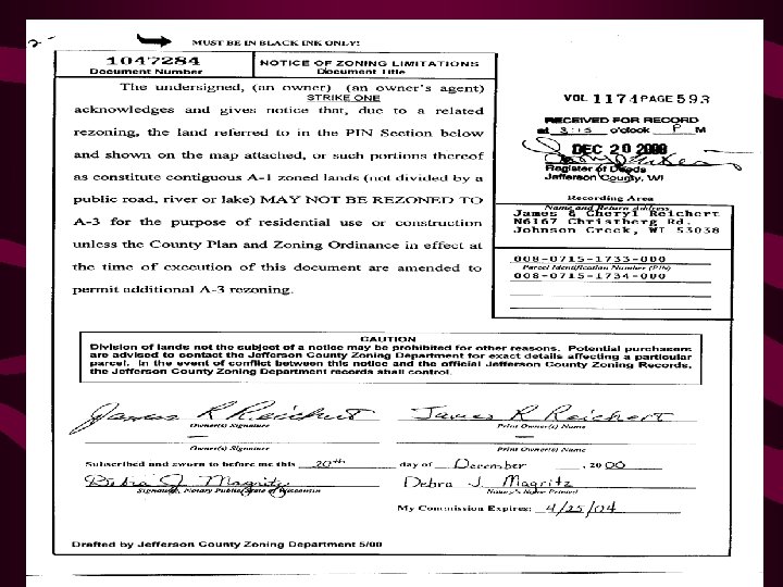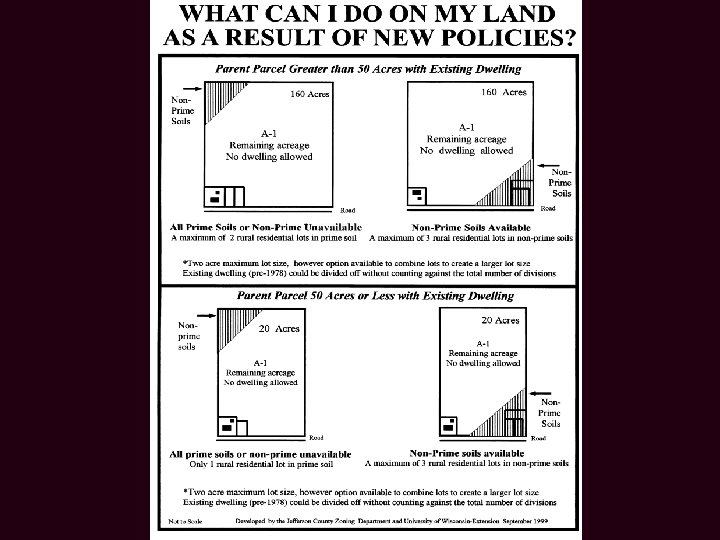 Jefferson County Agricultural Preservation and Land Use Plan: Summary of Process and Components (cont. ) • Interest groups: – Committee of the Jefferson County Towns Association – Jefferson County Economic Development Corporation – Jefferson County Board of Realtors – Farm Bureau – Environmental Network – Interested County Board members • Plan Approved Unanimously: October 1999 • Revised Zoning Ordinance Approved: February 2000 • Zoning Ordinance in Effect: March 20, 2000