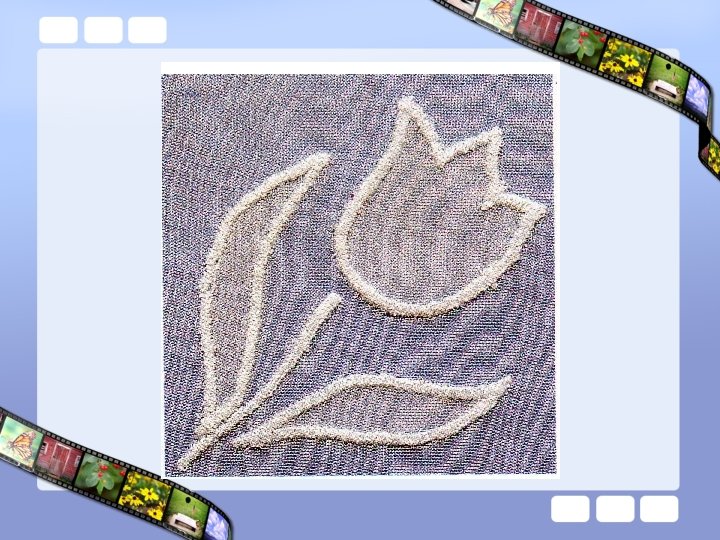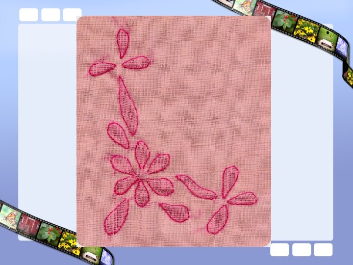 • Sulaman bayangan: sulaman bayangan karena yang berfungsi sebagai hiasan adalah bayangannya saja, karena bayangannya yang kita manfaatkan maka kain yang kita gunakan adalah kain yang tembus terang seperti paris dan sifon. a b c