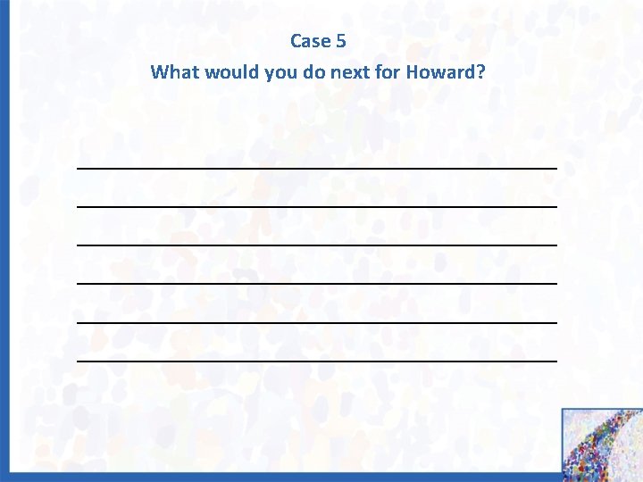 Case 5: Howard • • 49 -year-old African American man Weight/Height: 250 lbs/6’ 2”; BMI = 31. 6 T 2 DM x 2 years Current treatment: – metformin (1 g in 2 doses/d) – basal insulin (degludec) (40 U/d) • A 1 C = 8. 3 • FPG range: 100 – 130 mg/d. L