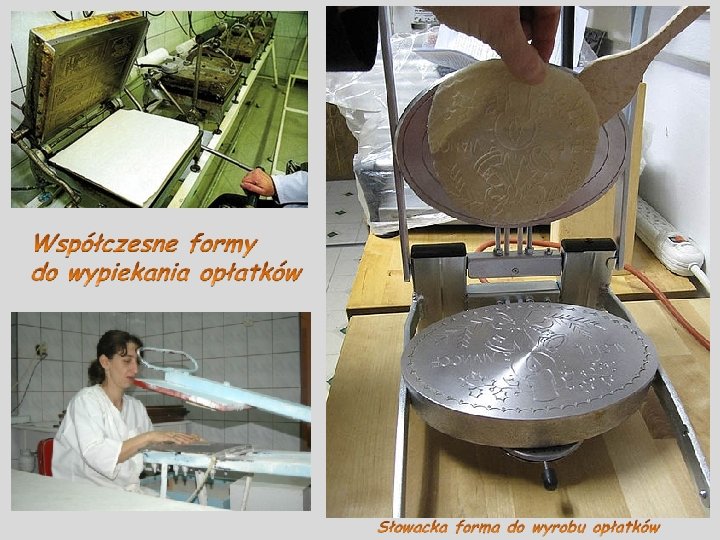 Wypiekiem opłatków trudniły się kiedyś prawie wyłącznie klasztory, zwłaszcza żeńskie. Także przy wielu kościołach wypiekano opłatki. Receptury opłatka i hostii były identyczne ale opłatek wigilijny był prostokątny a hostie okrągłe. Ozdoby na opłatku - roślinne ornamenty, symbole religijne motywy bożenarodzeniowe pojawiły się w czasach późniejszych. Dziś, coraz częściej, opłatek produkują masowo wyspecjalizowane zakłady.