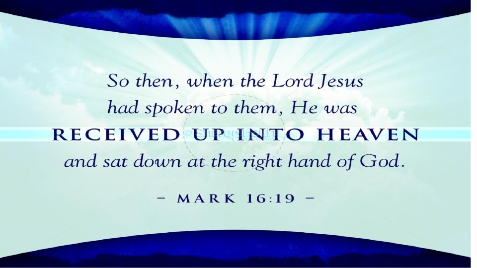 • he was taken up; and a cloud received him out of their sight • Mark states: • ‘he was received up into Heaven and • Sat down at the right hand of God. Mark 16: 19.