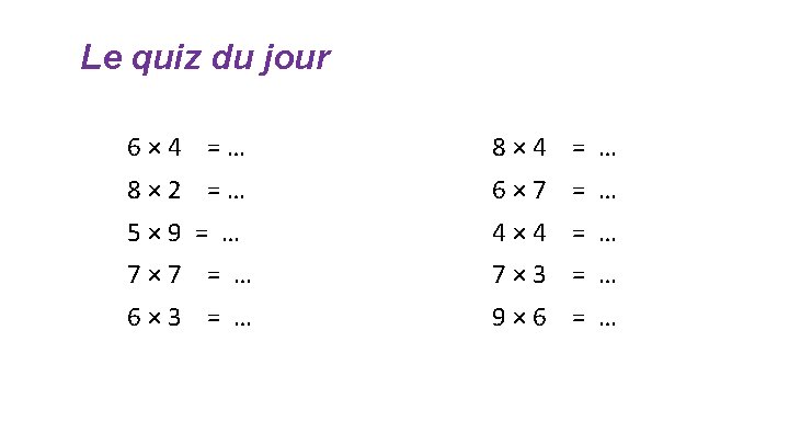 Le quiz du jour 6 x 4 10 12 14 18 20 21 24 28 30 32