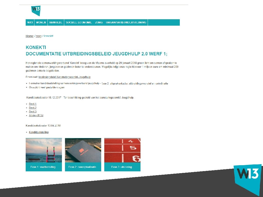 Afsluitende boodschappen Beslissing m. b. t. fase 2 Uitgewerkt voorstel fase 2 werd onder voorbehoud goedgekeurd. Dit betekent dat de start van het samenwerkingsverband in september 2018 wordt nagestreefd, als op korte termijn onderstaande elementen zijn uitgeklaard. Met betrekking tot volgende elementen wenst het projectteam AC Brussel een overleg woe 4 juli 2018. • Concretisering/operationalisering van het afsprakenkader als geheel (garanties naar uitvoering van eerder vrijblijvend geformuleerde engagementen) en specifiek de link tussen het verbindingsteam en het reguliere aanbod waarbij in punt 1, 8 gesteld wordt dat het reguliere aanbod capaciteit ‘tracht’ vrij te maken. • Concretisering van volumeafspraken enerzijds en het engagement van het samenwerkingsverband anderzijds; • Verduidelijking van de inzet van ELPF: 4 -8 sessies, verlengbaar. Willen we met Konekti fase 3 aanvangen dan dienen we toch een aantal zaken te wijzigen: • Vooraleerst is het noodzakelijk om per voorziening een engagementsverklaring op te maken waarin duidelijke garanties (participatie aan instroomoverleg, overbruggingshulp, registreren in het monitoringssysteem, zorgcoördinatie, samen werken met het verbindingsteam, …) staan inzake Konekti. Dit is nu vrijblijvend. • Met de gemandateerde voorzieningen zijn op dit moment geen volumeafspraken gemaakt. De agentschappen vragen om dit wel te doen. • Het aantal sessies per begeleiding door een ELPF moeten beperkt blijven. 8 sessies is teveel.