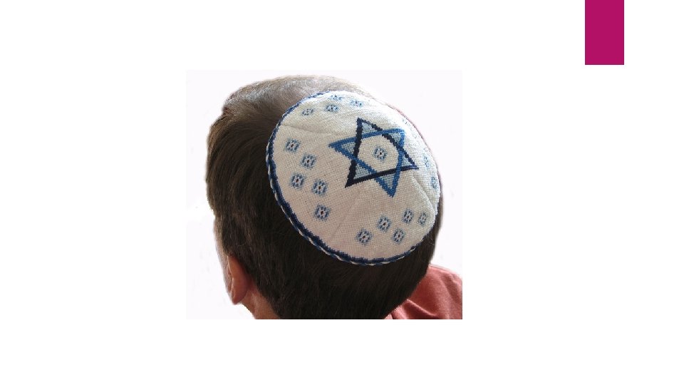 Kippah/Yarmulke Significance A skull cap that beautifully embroidered and worn as respect for God by covering the head. When/Where it is Used Worn during prayer/Torah study and synagogue services Strict Jewish males wear them all the time