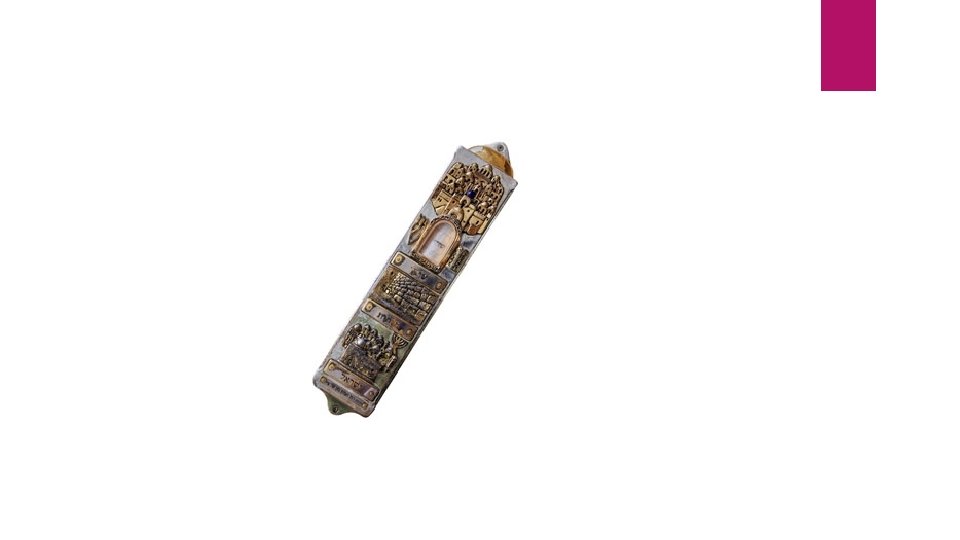Mezuzah Significance A special box that contains the Shema, the central prayer of the Jews Means God is present in the house When/Where it is Used Mounted on right side of door frames (except bathroom doors) Strict Jews touch it as they pass by and kiss their fingers to express love of God