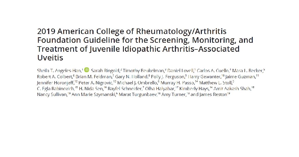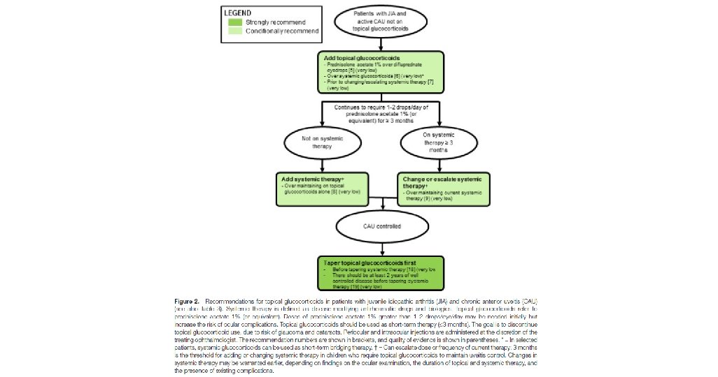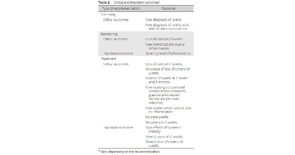 • Conclusion- This guideline provides direction for clinicians and patients/parents making decisions on the screening, monitoring, and management of children with JIA and uveitis.