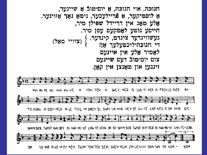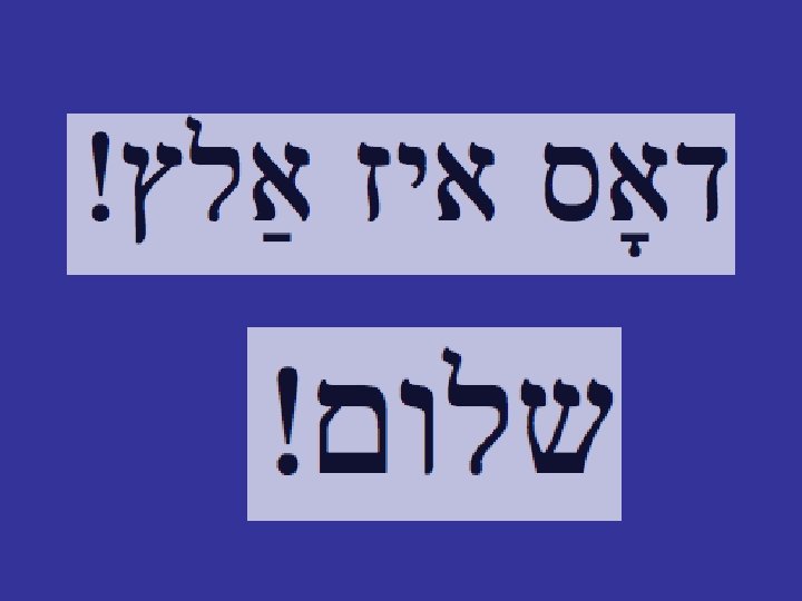 Jiddisch (engl. Yiddish): die ‘jüdische’ Sprache • Vokabular, Grammatik meistens Deutsch • auch slawische (Polnisch, Russisch, usw. ) und hebräische Elemente • hebräische Schrift