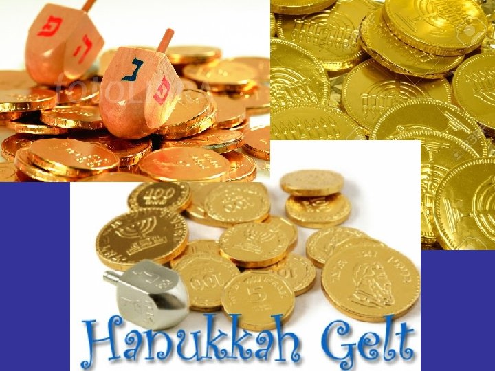 Each player begins with 10 -15 game pieces: chocolate gelt, pennies, or raisins. At the beginning of each round, everyone puts one game piece into the center pot, then again after every turn. Each player spins the dreidel once during their turn. Depending on which letter is facing up when it stops spinning, they give or take game pieces from the pot: If ( נ nun), nisht, nito (player does nothing). If ( ג gimel), gants (gets everything whole pot). If ( ה he), halb (player gets half of the pot). If ( ש shin), shtel ayn (player puts in a piece to the pot). If the player is out of pieces, they are either “out” or may ask another player for a “loan”.