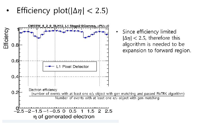 • efficiency plot(under 2. 8) • Further plots were obtained including area between the Eta region 2. 5 to 2. 8. • Added plot shows around 0. 8 efficiency