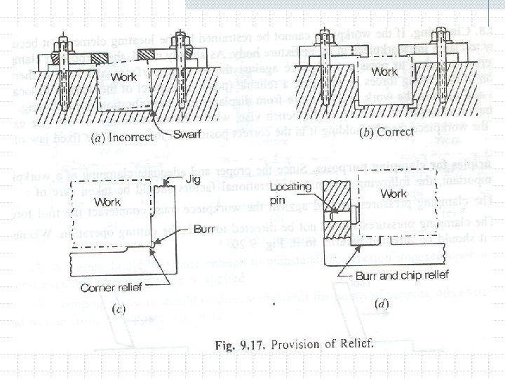 7. Locating pins should be easily accessible and visible to the operator. 8. To avoid distortion of the work, it should be supported as shown in fig.