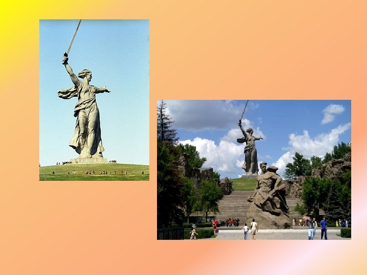 Nejvyšší socha bez podstavce • Mamajevova mohyla ve Volgogradu (dříve Stalingrad) v Rusku. • je vysoká 82 metrů. Světový rekord! • Matka Vlast je zpodobněna jako antická bohyně vítězství Niké • od paty kopce až k samotné soše vede přesně 200 schodů, které mají symbolizovat počet dní trvání Bitvy o Stalingrad • součástí památníku je i masový hrob neidentifikovaných sovětských vojáků, právě toto návrší, jako jedno z míst nejurputnějších bojů celé bitvy, je považováno za místo, kde došlo k zásadnímu obratu v průběhu Velké vlastenecké války a druhé světové války vůbec