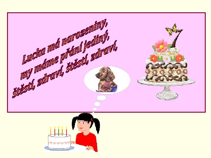 CELOU NAŠI PRÁCI SI MŮŽETE PŘEČÍST. Oslava narozenin Lucka měla v pondělí narozeniny. Slavila je už o minulém víkendu. Maminka připravila na oslavu zákusky a obložené chlebíčky. Lucka se také snažila a vyrobila jednohubky. Tatínek se postaral o něco dobrého k pití. Nakoupil vody, džusy a dokonce i dětské šampaňské. Bratr Tomáš krásně vyzdobil obývací pokoj. Nechyběly ani barevné nafukovací balónky. Odpoledne přišli všichni Lucčini kamarádi. Přinesli blahopřání a spoustu dárků. Narozeninová oslava se opravdu vydařila.