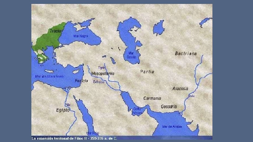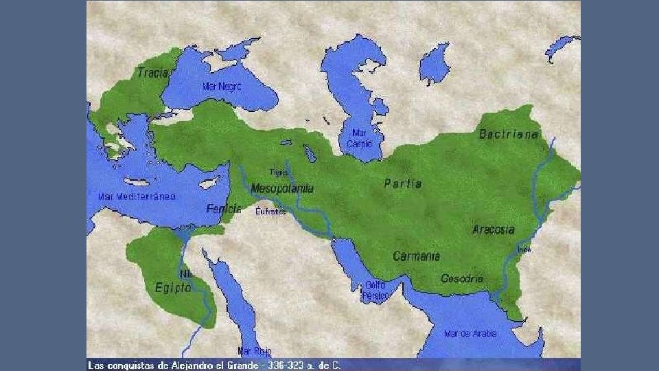 • El tercer reino, el cual dominara toda la tierra es el imperio Griego • fue un imperio glorioso. • Su emperador Alejandro (Magno o el grande) nació en el 356 a. C y murió a los 33 años de edad en el 323 a. C. • Fue un gran conquistador, todo lo que se proponía invadir lo conquistaba, cuando murió había conquistado casi todo el mundo antiguo. • En cuanto a su formación militar, su padre Filipo II de macedonia lo instruyo desde muy joven, en lo secular fue instruido por Aristóteles.