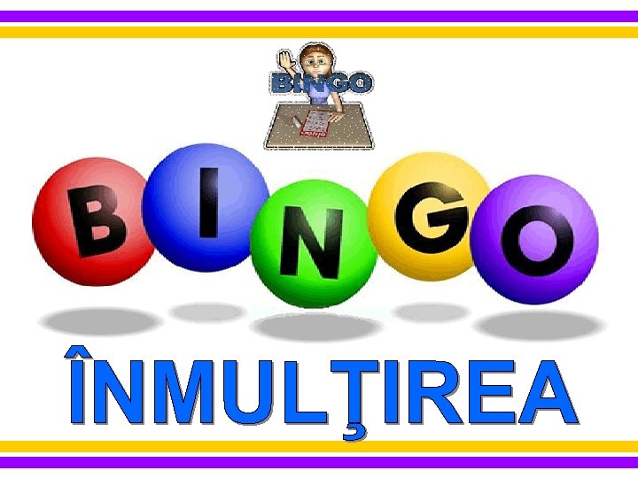 Jocul “Bingo-Înmulţirea” este un joc simplu, dar trebuie să ştii foarte bine înmulţirea. Ai un bilet cu 25 de numere şi după ce îţi apare operaţia de înmulţire trebuie să dai click pe rezultat, care se regăseşte printre numerele de pe bilet şi astfel îl bifezi. Atunci când ai bifat un rând de 5 numere, pe orizontală, pe verticală sau oblică, ai realizat “BINGO” şi poţi să treci la jocul următor.