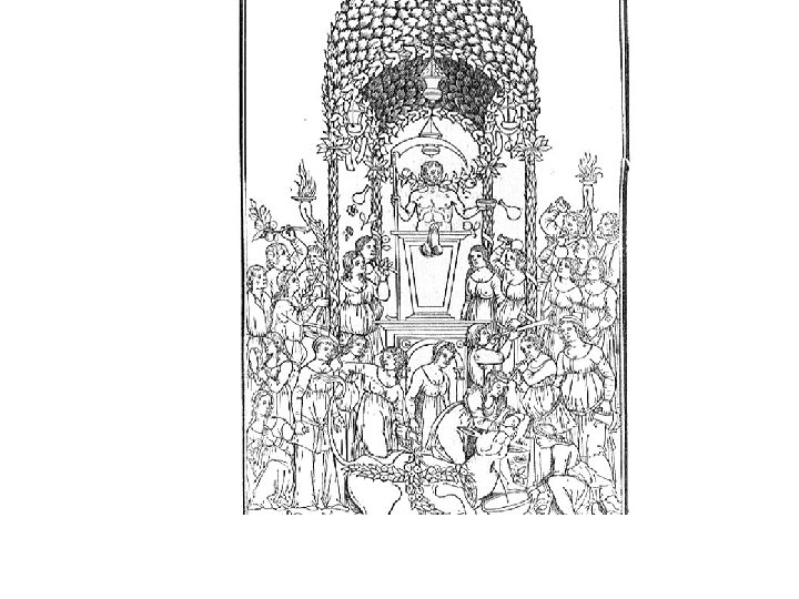 15. PROPAST SIMBOLIZMA • U simboličkom mišljenju ima mjesta za beskrajnu mnogostrukost uzajamnih odnosa među stvarima. Najuzvišenije stvari imaju na tisuće simbola, a nema tako niske stvari koja ne bi mogla veličati najviše (primjerice orah je Krist: slatka je jezgra njegova božanska narav, a drvenasta kora njegov križ. ) Huizinga koristi termine kojima opisuje srednjovjekovno mišljenje kao polifoniju misli i akorde simbola. Primjeri su brojni: od brojke sedam sačinjeni su čitavi sistemi, boje crvena, crna i bijela, broj tri, itd…Personifikacija je bila tako razvijena da se svaka misao gotovo sama od sebe mogla pretvoriti u igrokaz. Antropomorfna predodžba najčešće je povezana s uzvišenim sadržajima, ali ne uvijek, pa tako je recimo u pjesmi koja potječe iz 13. st. Bitka između Korizme i Karnevala sama bitka prikazana u bori sira protiv šarana, kobasica protiv jegulje. U sjevernonjemačkim gradovima u crkvenom koru vješaju lutku koja se nazivala Korizmom, a koja se skidala za mise na Pepelnicu. Prema Huizingi bitna razlika između alegorije srednjega vijeka i mitologije renesanse ne postoji.