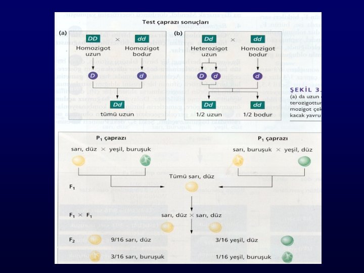 Test Çaprazı Baskın fenotipli fakat genotipi bilinmeyen bir organizma, homozigot çekinik birey ile çaprazlanır. DD(uzun) X dd(bodur) Dd(uzun) Dd(Uzun) X dd(bodur) Dd(yarısı), dd(yarısı)