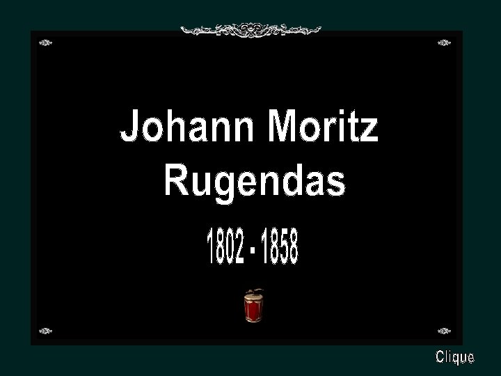 JOHANN MORITZ RUGENDAS Pintor e desenhista alemão, Rugendas nasceu em Augsburg a 29 de março de 1802 e morreu em Weilheim a 29 de maio de 1858. Descendente de família de pintores e gravadores, fez os primeiros estudos com o pai, aperfeiçoando-se depois na Academia de Belas-Artes de Munique. Viveu muitos anos no Brasil, cuja paisagem e costumes fixou com o mesmo sentido de observação de Debret.