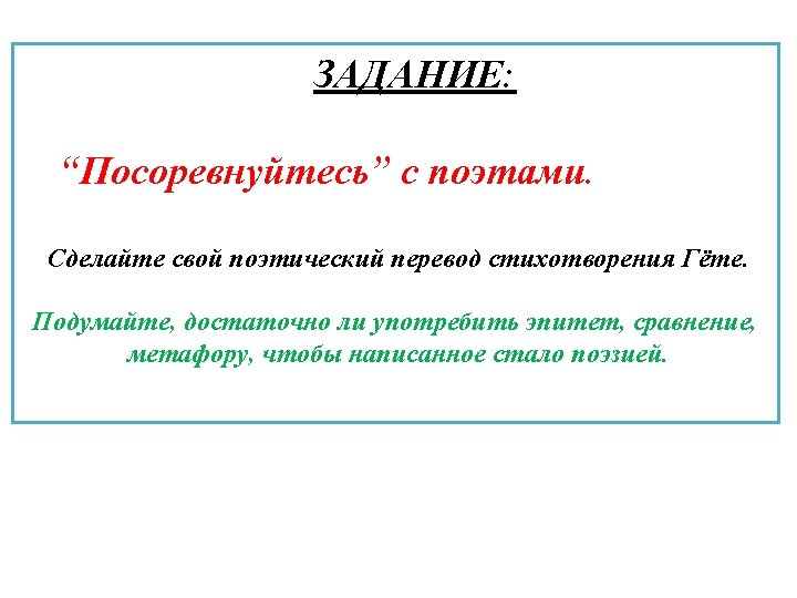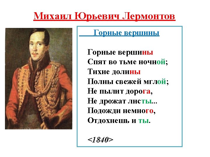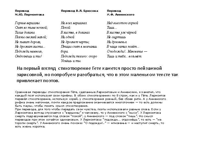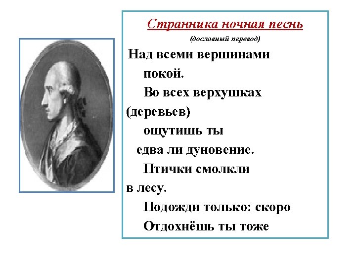 Johann Wolfgang von Goethe Закрепляем лексику! Вставьте пропущенные слова Über allen … Ist …, In allen … Spürest du Kaum einen … Die … schweigen im … Warte nur, balde Ruhest du auch.