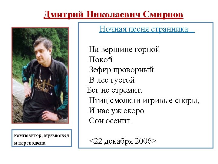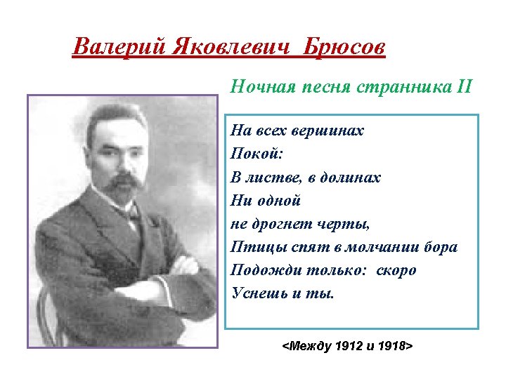 Johann Wolfgang von Goethe Wanderers Nachtlied II Über allen Gipfeln Ist Ruh, In allen Wipfeln Spürest du. Kaum einen Hauch. Die Vogelein schweigen im Walde Warte nur, balde Ruhest du auch.