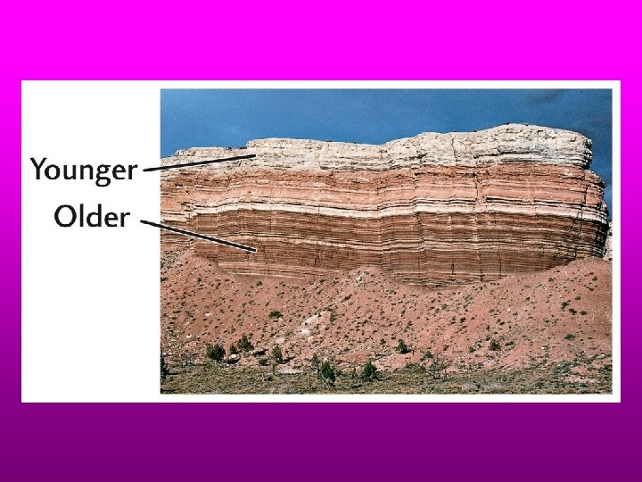 Principle of Superposition Lowest layers are older If this is not so, then the layers have been overturned by tectonic activity: