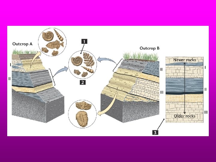William Smith in the 19 th century was an engineer who noted that similar rocks in different areas had similar fossils and that different rock types had different fossils. He made a composite (ideal, pieced-together) stratigraphic succession as in the following figure