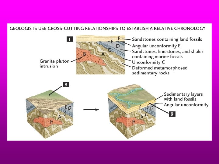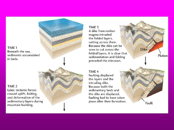 Cross-cutting relationships in sedimentary rocks allow is to date the relative timing of events such as faulting and igneous intrusion