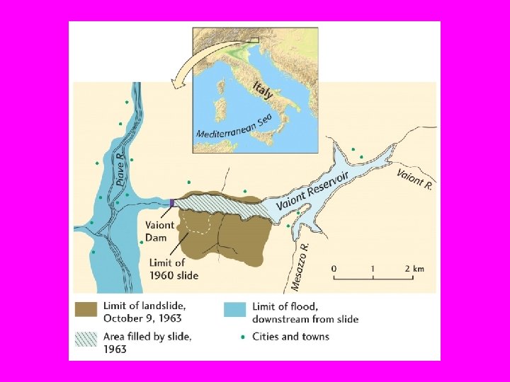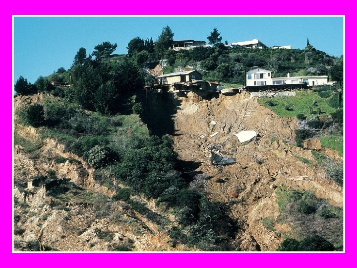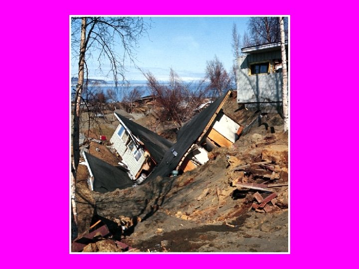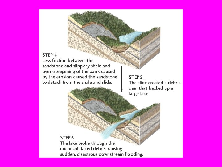 • Offshore Louisiana the same occurs as large amounts of sediment are deposited rapidly. • Moreover movement of underlying salt can destabilize the submarine slope. • Billion-dollar oil platforms in deep water have to be carefully placed where there is no risk of submarine slides. • A giant landslide broke 13 submarine cables that connected the US and Europe in 1929. That landslide was accompanied by a tsunami.