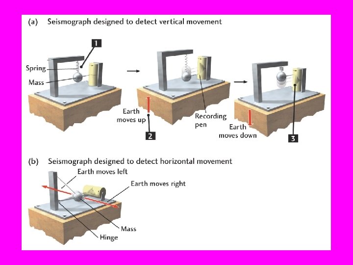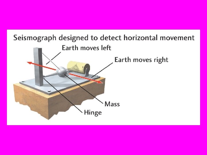 Seismograph A seismograph consists of a real or virtual mass that is so large that it moves totally out of “sync” with the frequency of the ground motion, that is as IF IT WERE STILL. The mass is not actually still but its large inertia allows the faster motions of the earthquake groundshake to be registered accurately.