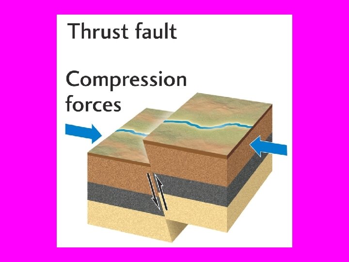 ACTIVE FAULTS GENERATE EARTHQUAKES (2) Earthquakes generate different first motions in different directions depending on the type of fault that generates the earthquake. • A first motion for a thrust fault in a horizontal direction is IN to the fault during the rupture. These tend to occur along convergent plate margin boundaries.