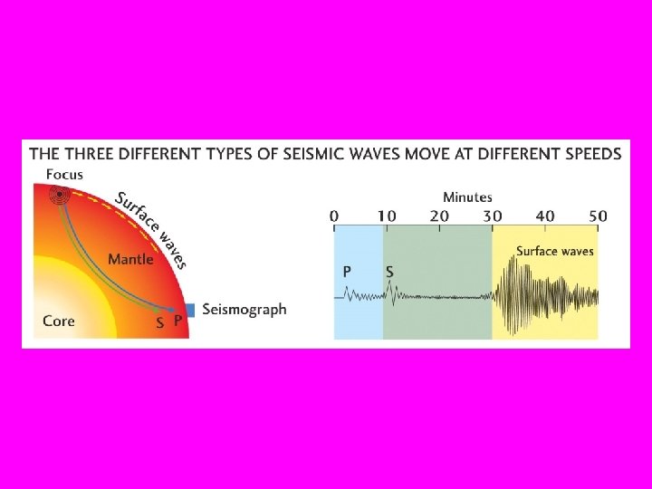 3 Types of Earthquake waves • P waves are the fastest, and first waves to arrive. S waves are the second fastest (~50%) and Surface waves (45%) are the slowest of the three major types of earthquake waves.