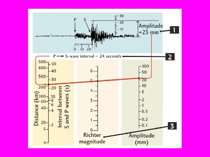 3 Types of Earthquake waves • (P and S) When an earthquake occurs it starts at depth, in the BODY of the earth. At depth there are only two types of particle motion possible. (P and S waves) P and S waves are known as BODY waves because they always originate inside the earth. These are not the most damaging but they are the first to be detected because they travel at very fast speeds ( e. g. >6000 m/s. )