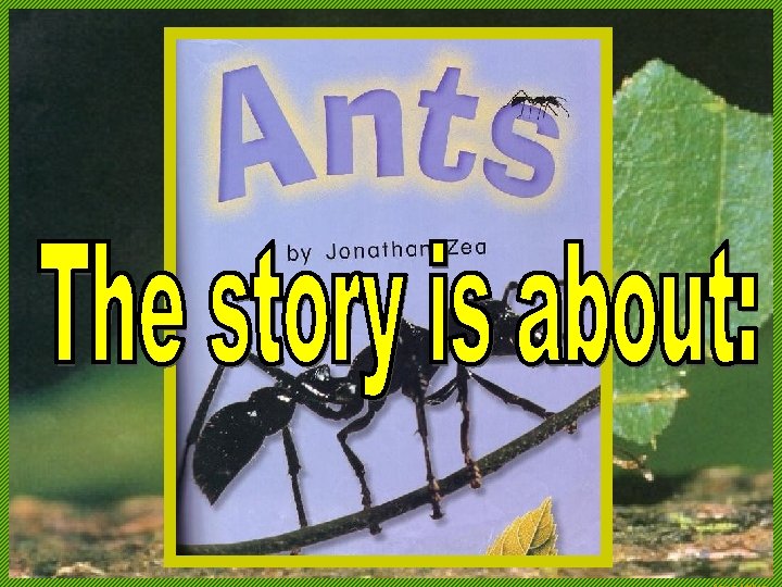 The story is about: This book shows pictures of ants working in and around an home. Their home is called an anthill.