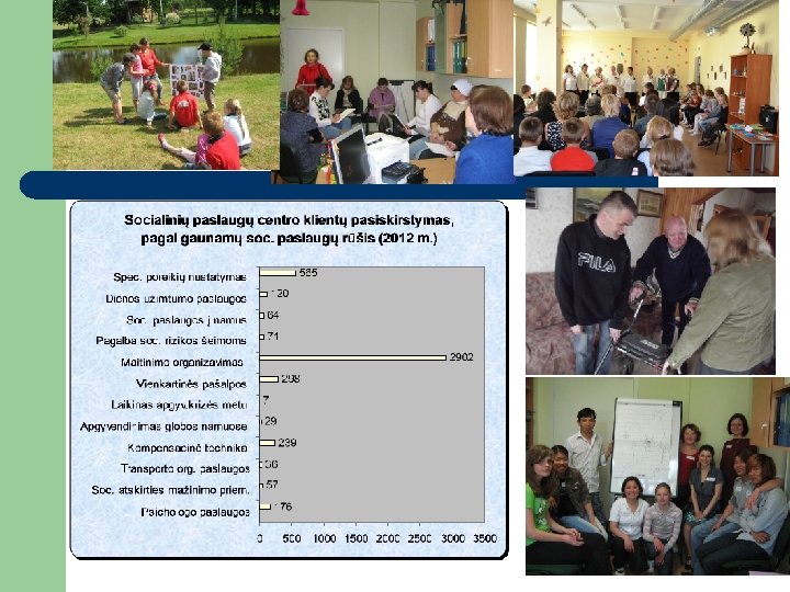 Inovatyvių socialinių paslaugų vystymas – projektinė veikla: l l l Socialinės rizikos šeimų ir Vaikų globos namų nepilnamečių merginų grupiniai psichosocialiniai užsiėmimai (su KMD, ES ir LRV finansuojamas projektas); Soc. rizikos asmenų, gavusių prieglobstį LR, integracijos skatinimas psichosocialinių užsiėmimų pagalba (su LRK, ES ir LRV finansuojamas projektas); Kompleksinės pagalbos krizę išgyvenančioms šeimos projektas „TU GALI“ (SADM finansuotas projektas); Vaikų dienos vasaros stovykla soc. rizikos šeimų vaikams (su NVO); Supervizijų metodo taikymas soc. d arbe (su KK ir Danijos ambasada); Kita projektinė veikla. . .